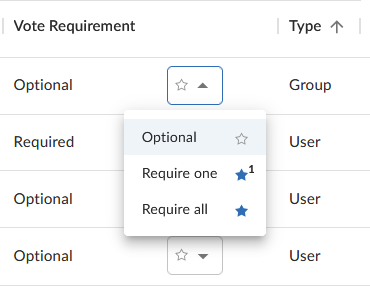 For users, select on of the following vote requirements.